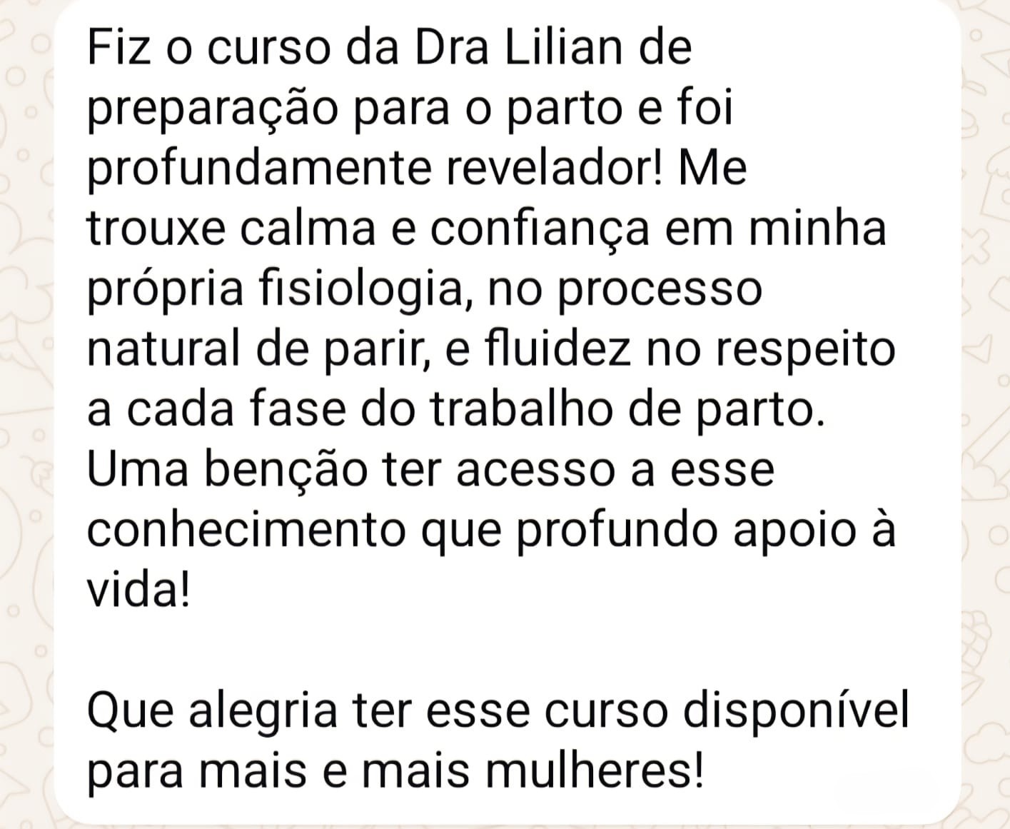 O curso te ensina como a dor pode ser aliviada com técnicas de respiração, movimento e conhecimento. Quando você entende o que está acontecendo, o parto se torna mais leve e confortável.