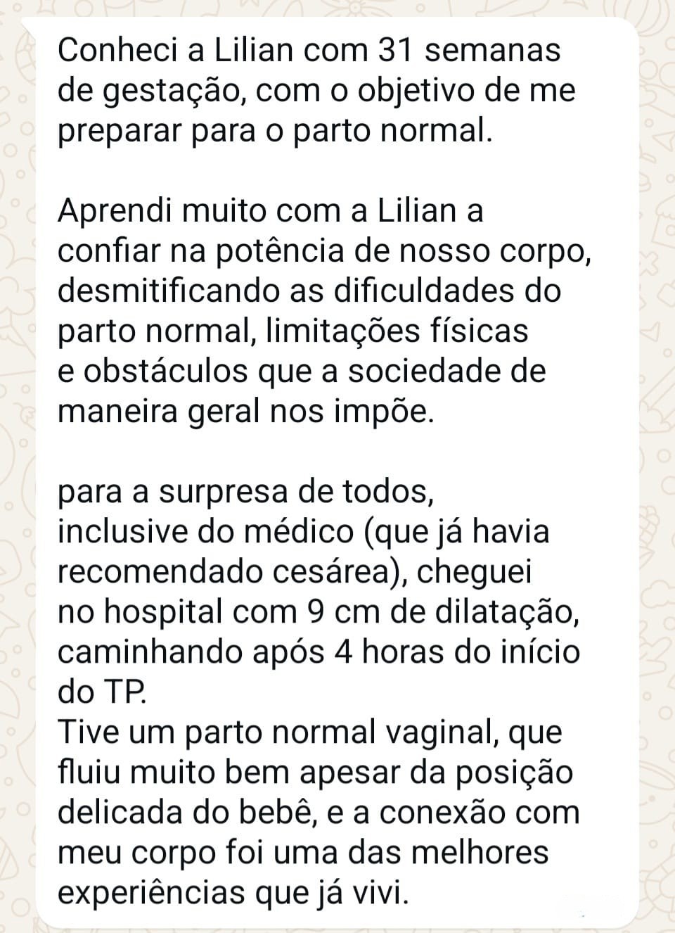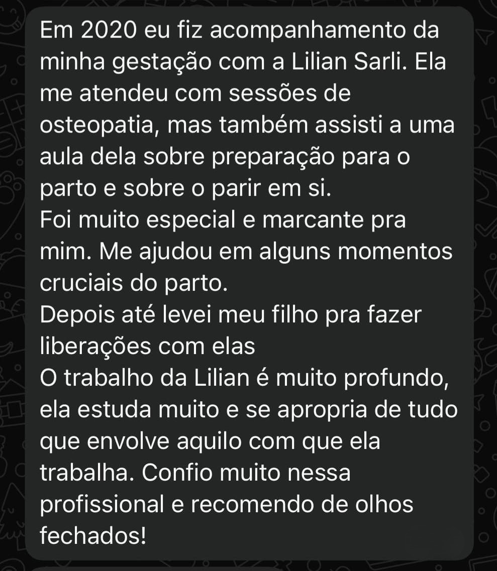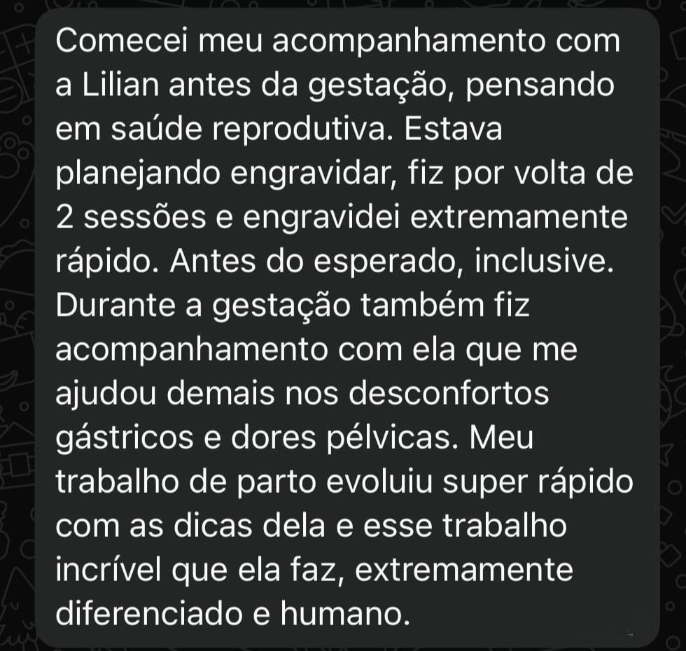 Eu sou a Lilian, fisioterapeuta osteopata e especialista em preparação para o parto. Estudo o parto há mais de 12 anos e vivi, na pele, dois partos naturais, conscientes e transformadores. Meu propósito é compartilhar tudo o que aprendi - na ciência e na prática - para que você possa viver o seu parto com mais confiança, autonomia e presença.
